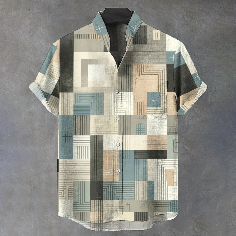 Men's Stand Collar Printed Short Sleeve Shirt 2409006068