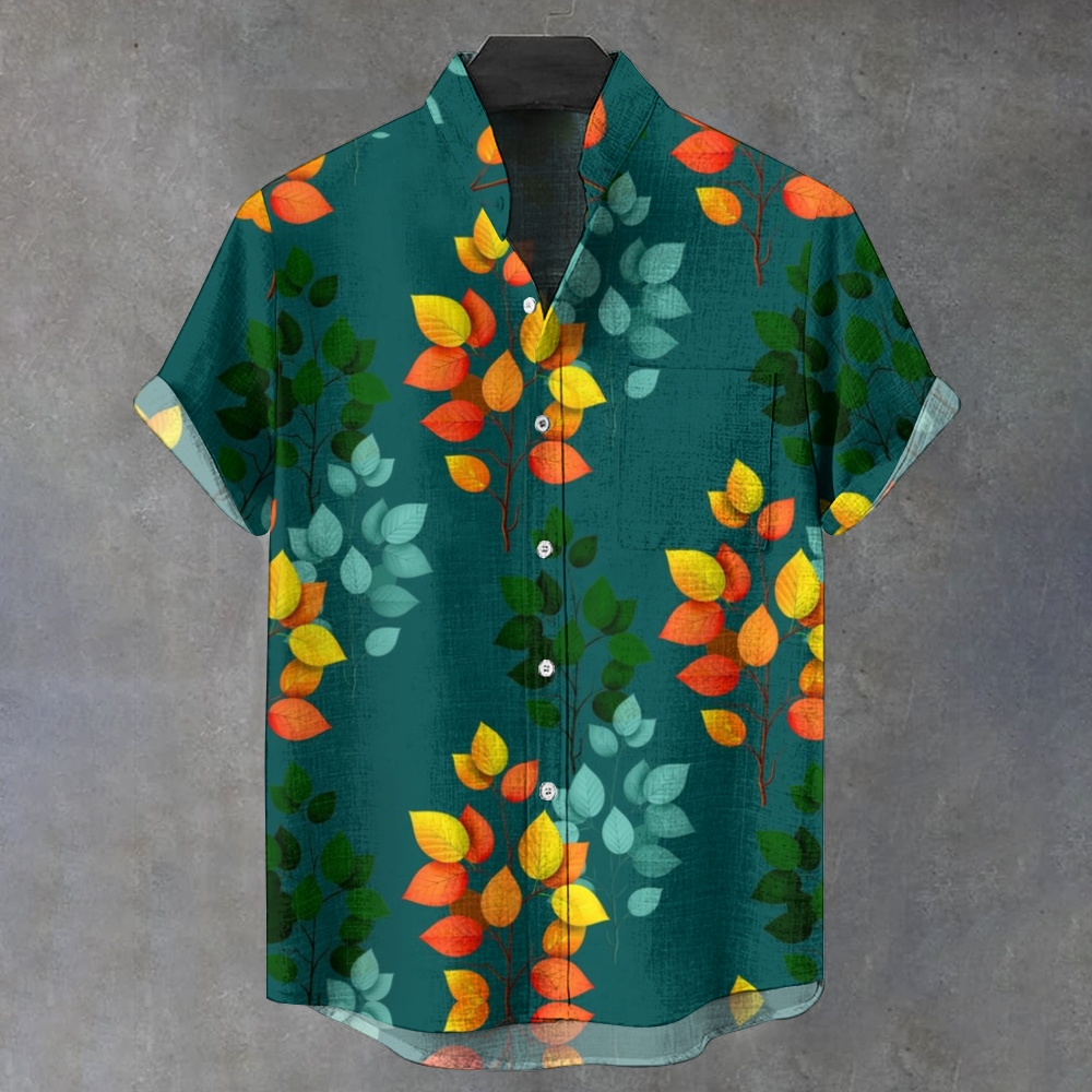 Men's Stand Collar Printed Short Sleeve Shirt 2409006249