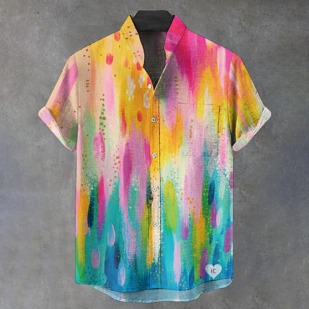 Men's Stand Collar Retro Colorful Gradient Dotted Printed Short Sleeve Shirt