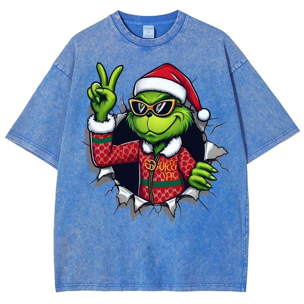 Unisex Christmas Monster Printed Washed Tee