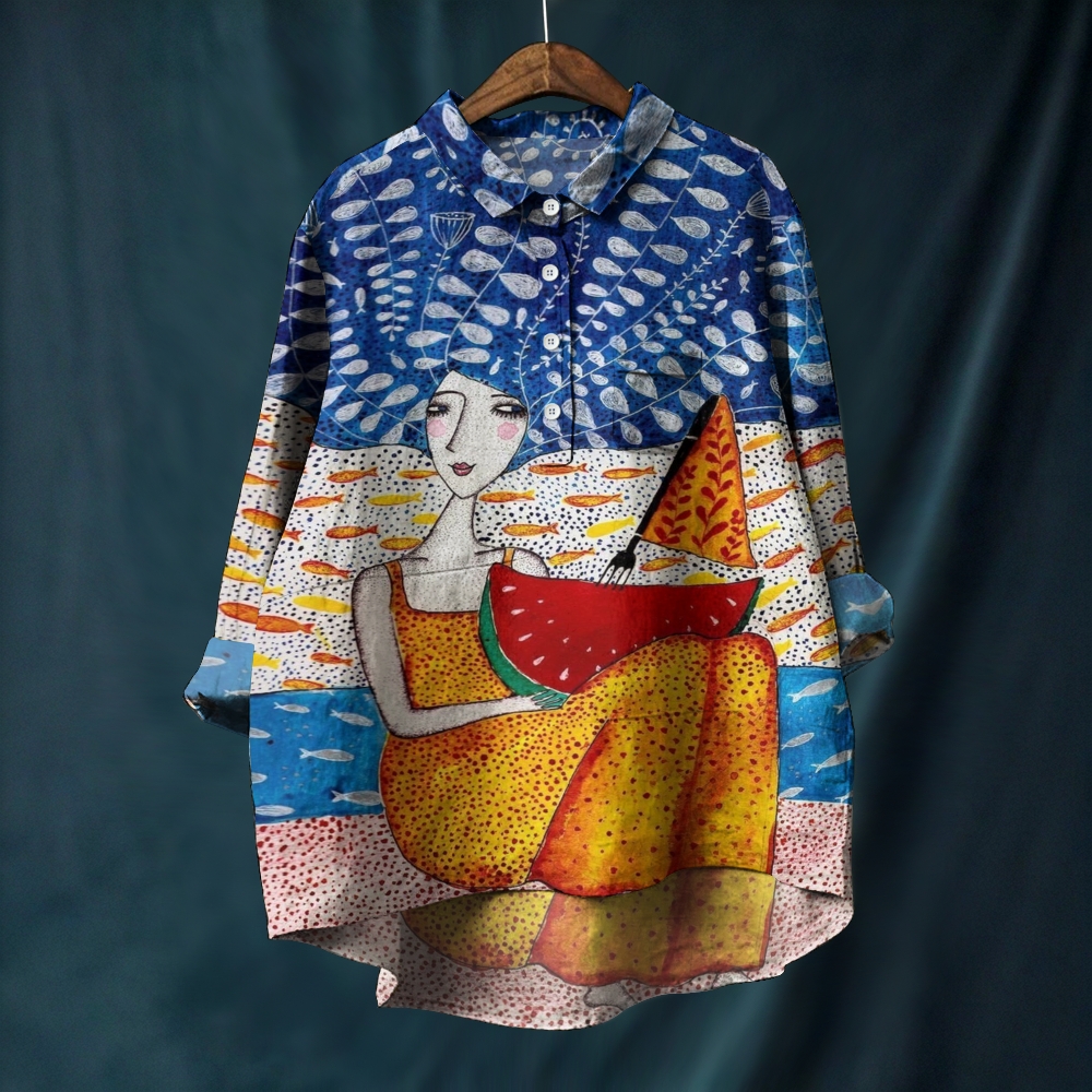 Women's Abstract Art Portrait Printed Casual Long Sleeve Shirt
