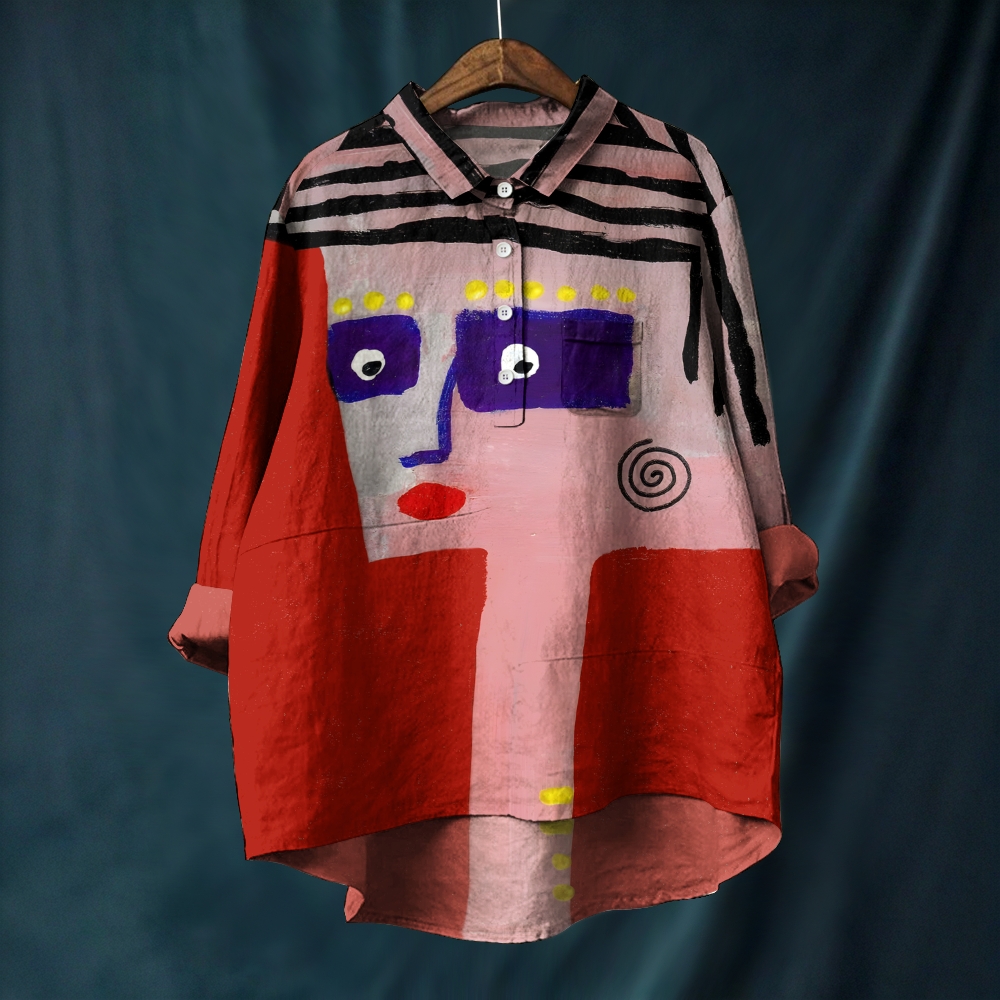 Women's Abstract Geometric Face Printed Casual Long Sleeve Shirt