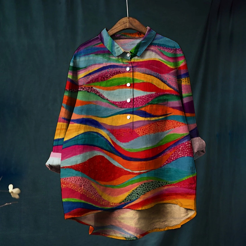 Women's Abstract Print Casual Linen Shirt