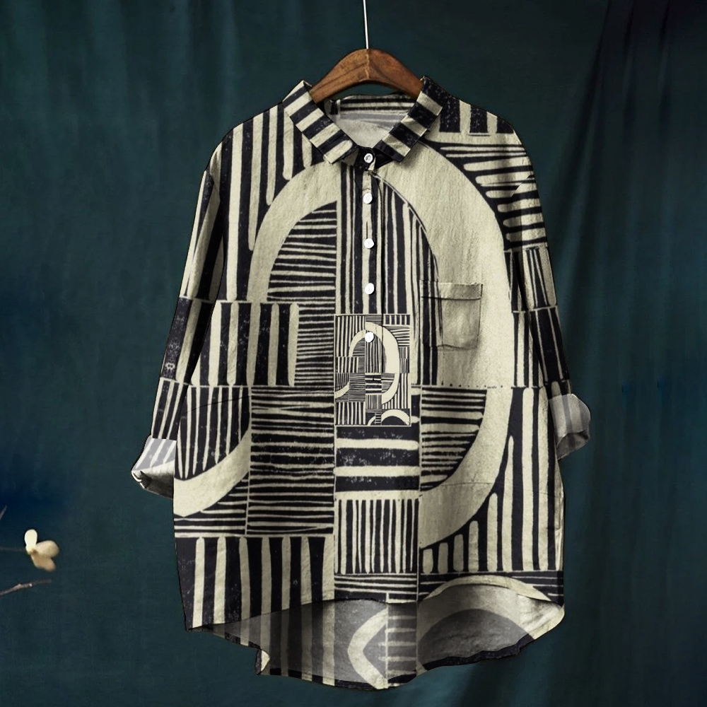 Women's Black and White Striped Colorblock Printed Casual Shirt