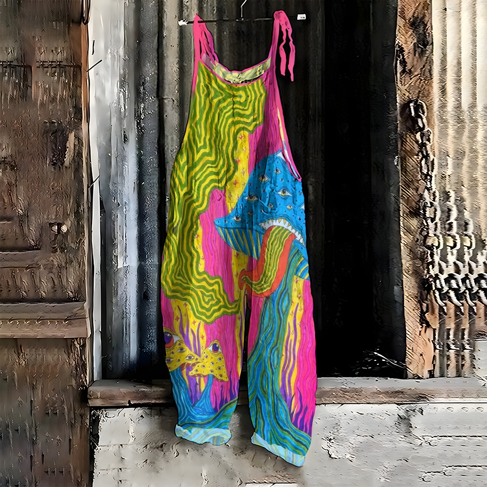 Women's Casual Abstract Art Eyes Printed Jumpsuit