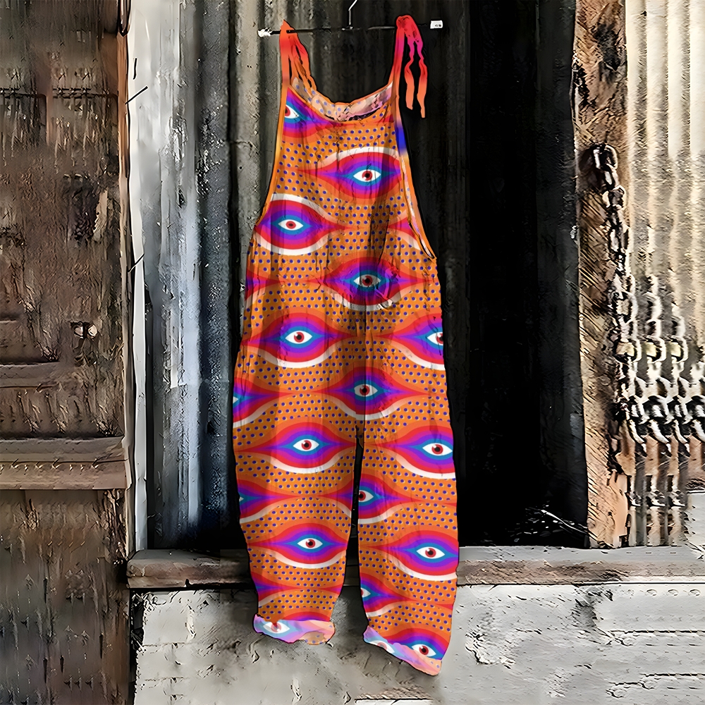 Women's Casual Artistic Polka Dot Eyes Printed Jumpsuit