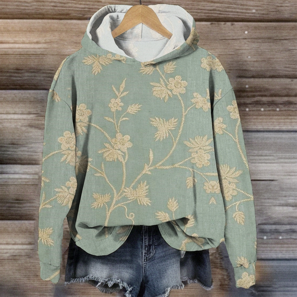 Women's Casual Retro Floral Printed Long Sleeve Hoodie