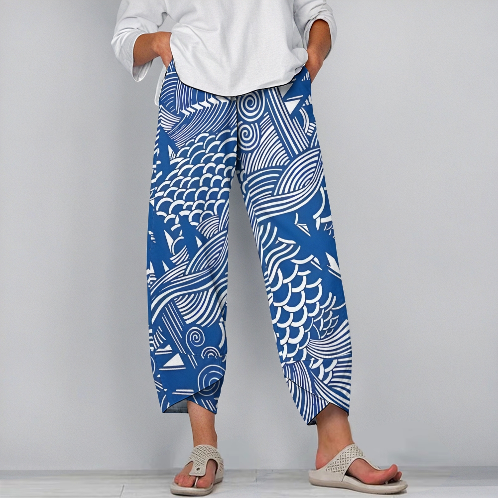 Women's Casual Vintage Waves Printed Pants