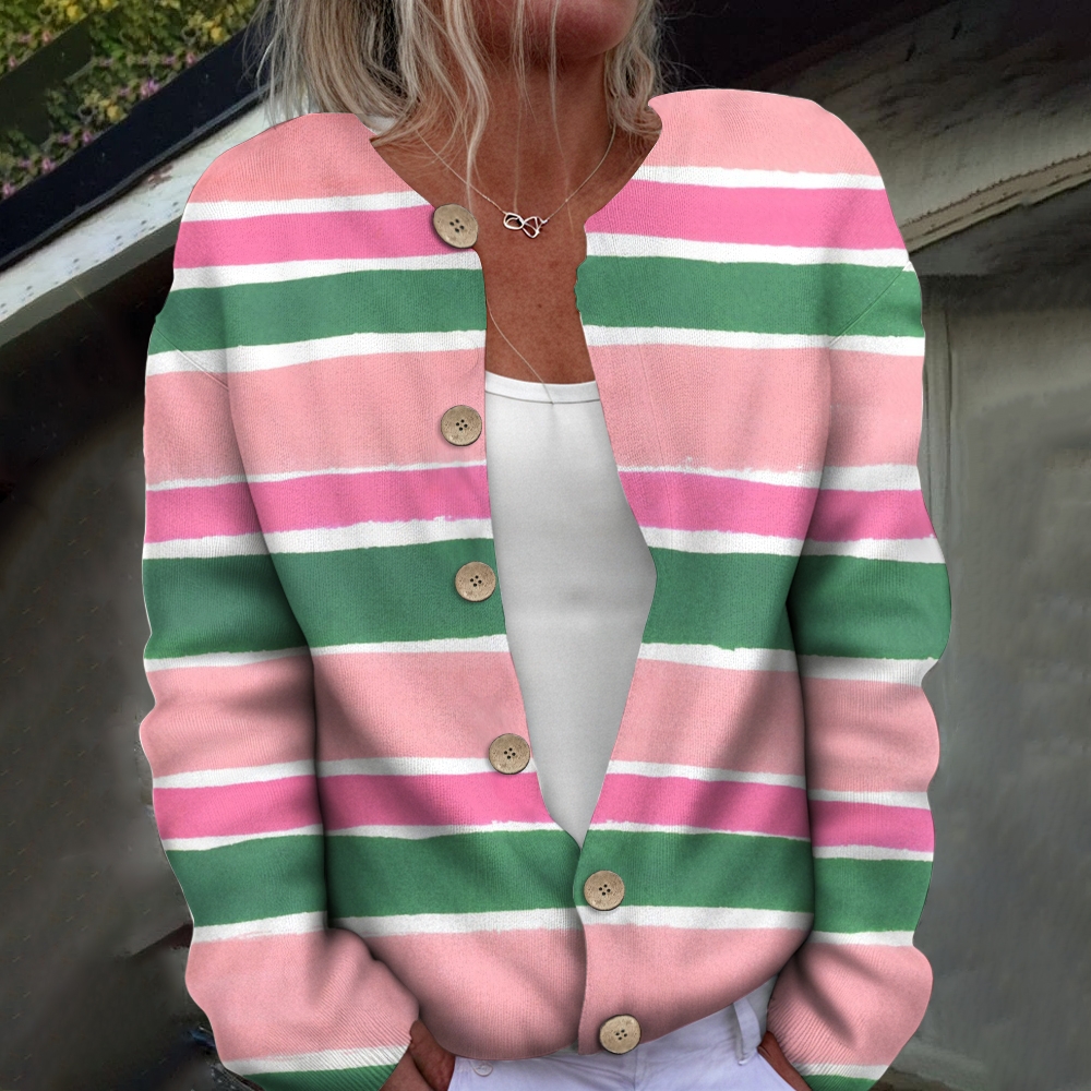 Women's Colorblock Stripe Printed Casual Cardigan Sweater