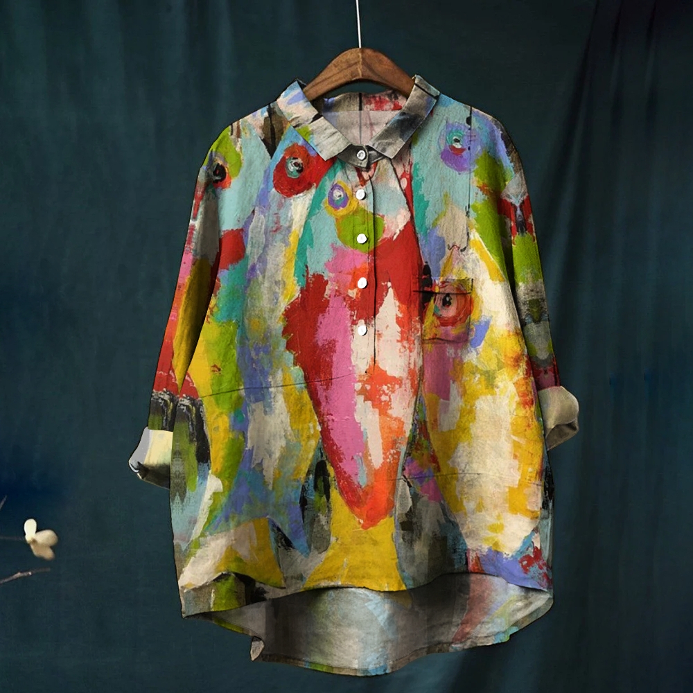 Women's Colorful Fish Art Print Casual Cotton And Linen Shirt