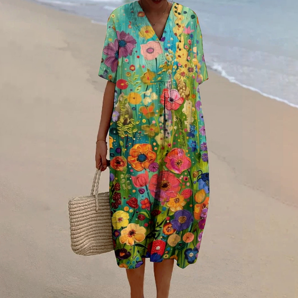 Women's Daisy Floral Print Cotton And Linen Dress