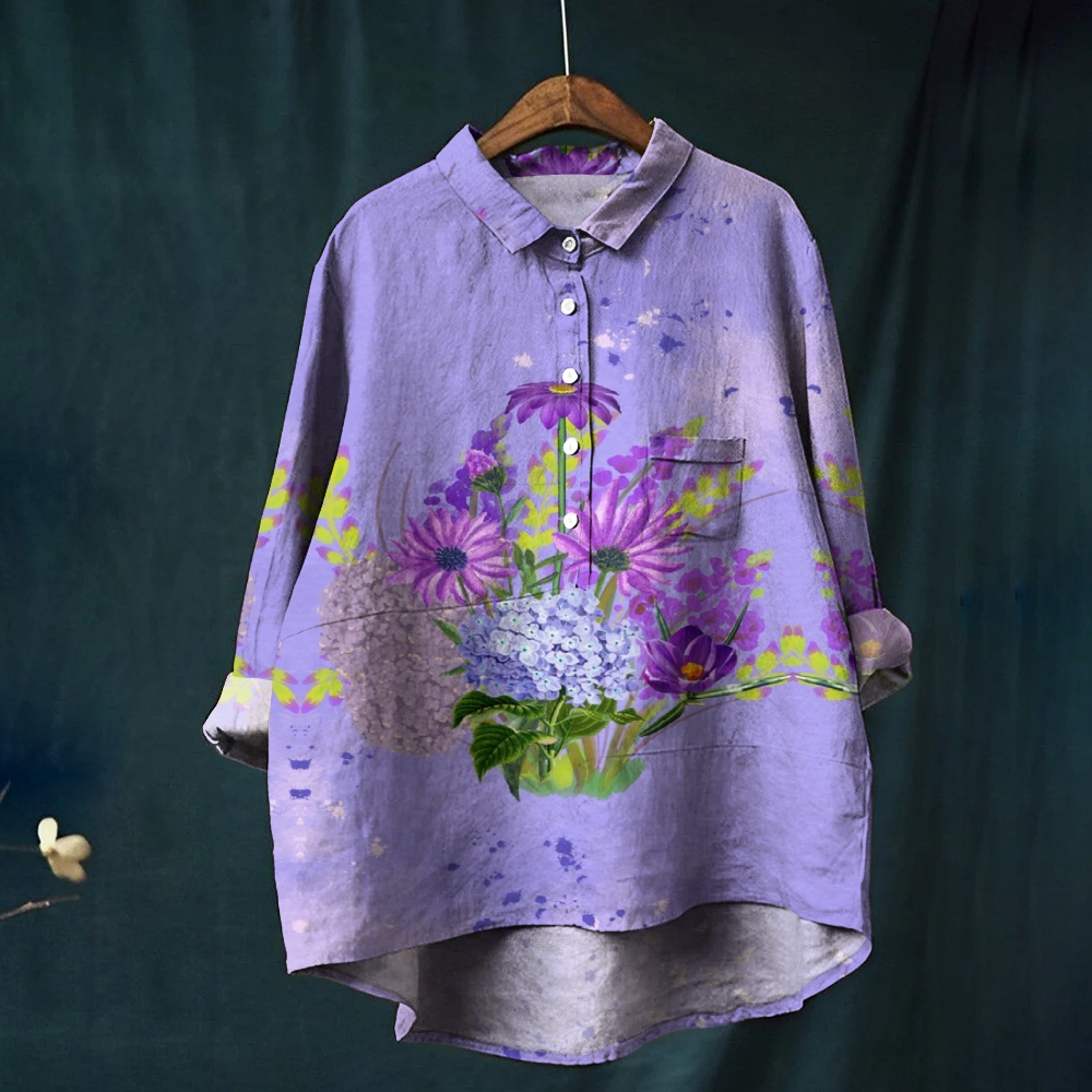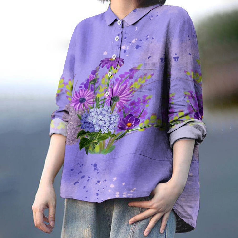 Women's Floral Print Casual Linen Shirt