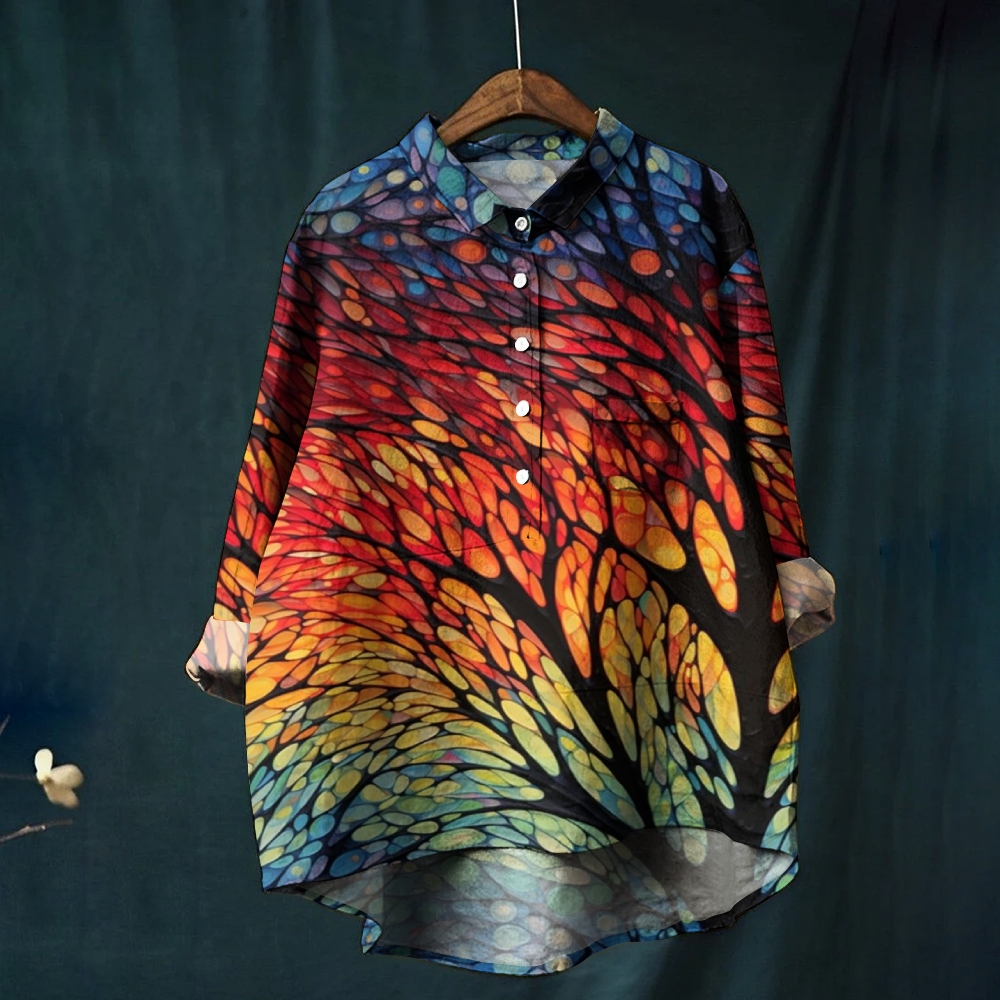 Women's Gradient Leaves Printed Casual Shirt