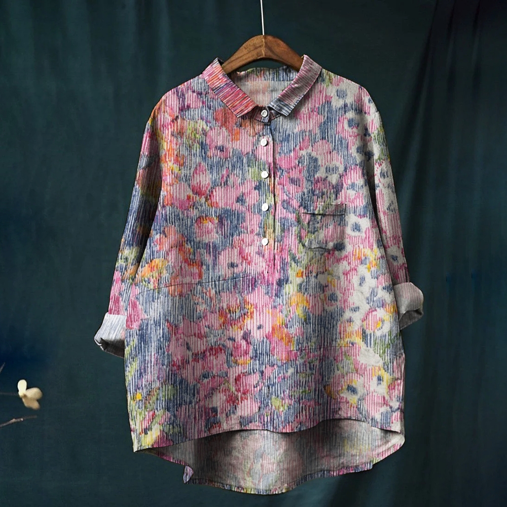 Women's Retro Floral Print Casual Cotton And Linen Shirt
