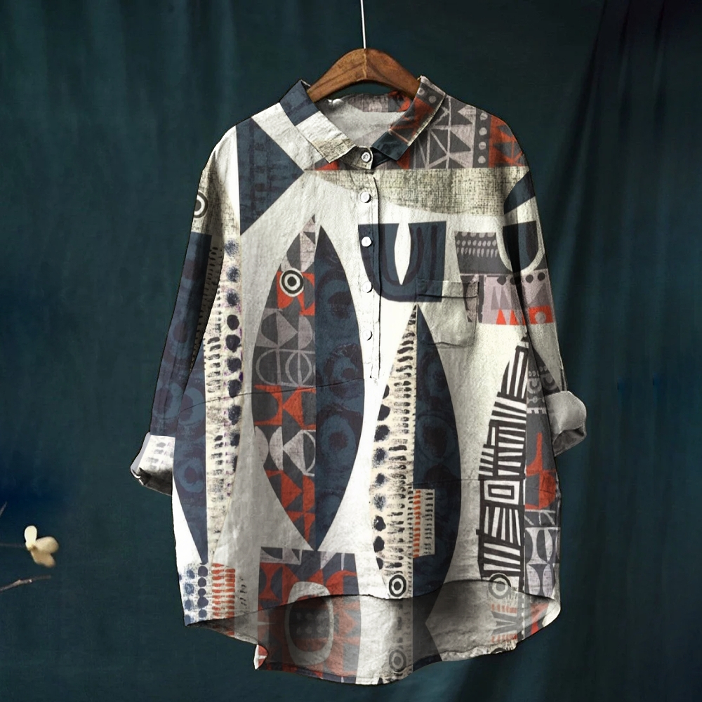 Women's Vintage Fish Print Casual Cotton And Linen Shirt