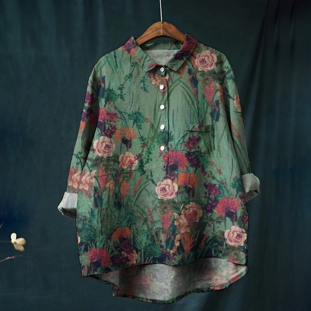 Women's Vintage Flower Art Print Casual Cotton And Linen Shirt