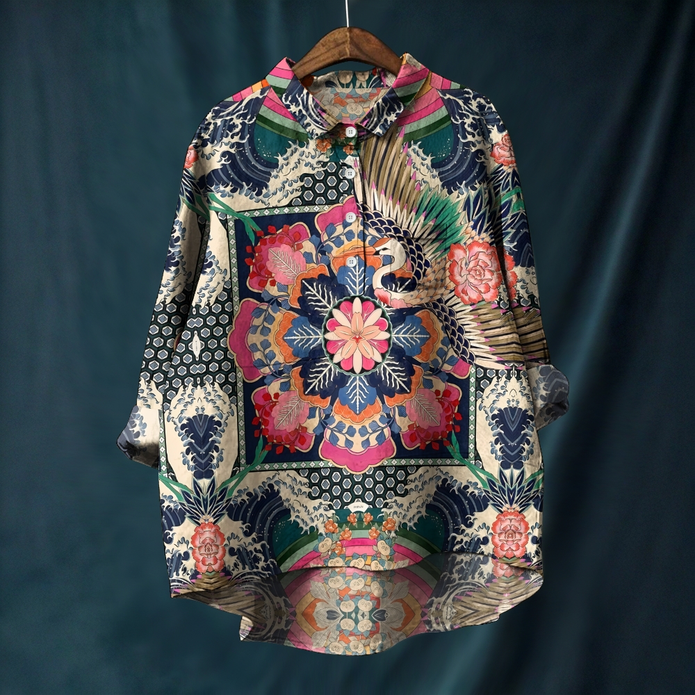 Women's Vintage Flower Printed Casual Long Sleeve Shirt