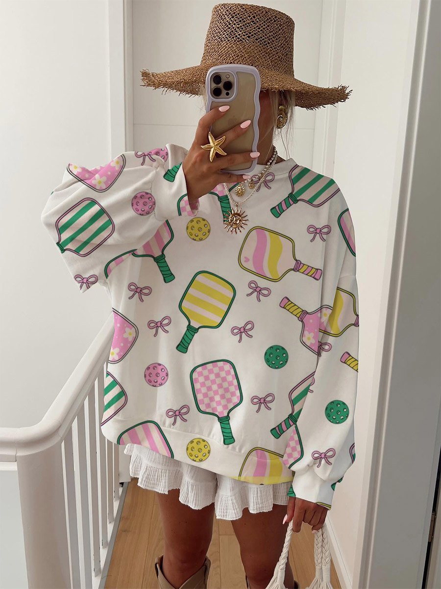 Women's Colorful Sports Bow Pattern Round Neck Long Sleeve Sweatshirt