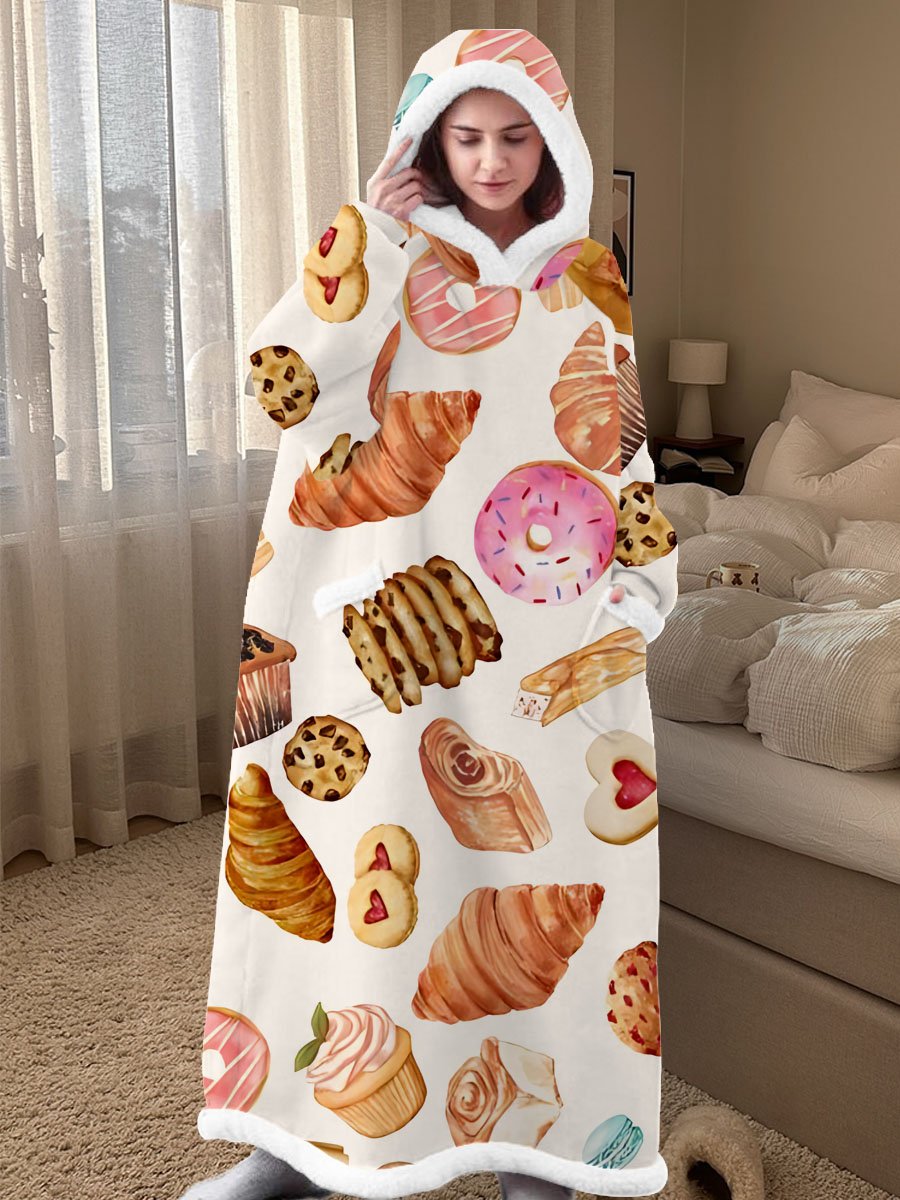 Women's Croissant Donut Cookie Print Oversized Pocket Cotton Dress