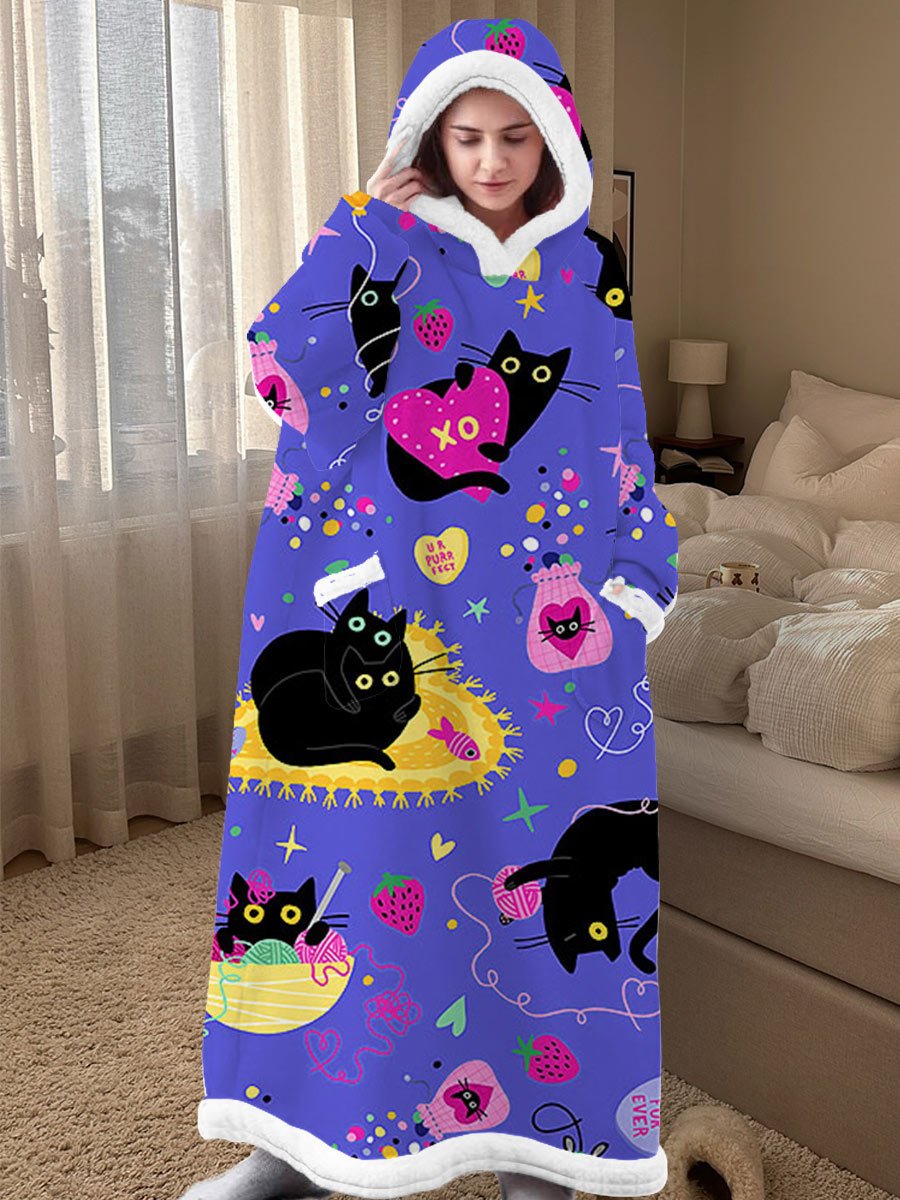Women's Cute Kitten Pattern Long Sleeve Hooded Dress