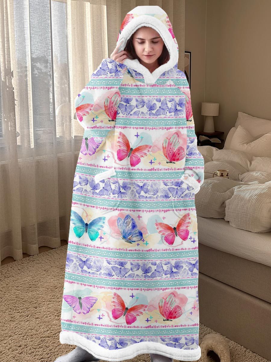 Women's Hand-Painted Butterfly Pattern Long Sleeve Hooded Dress