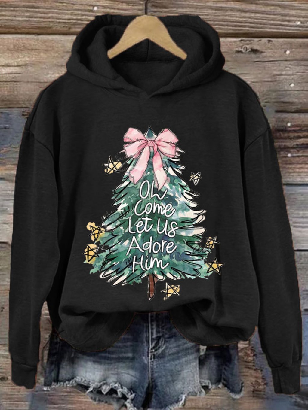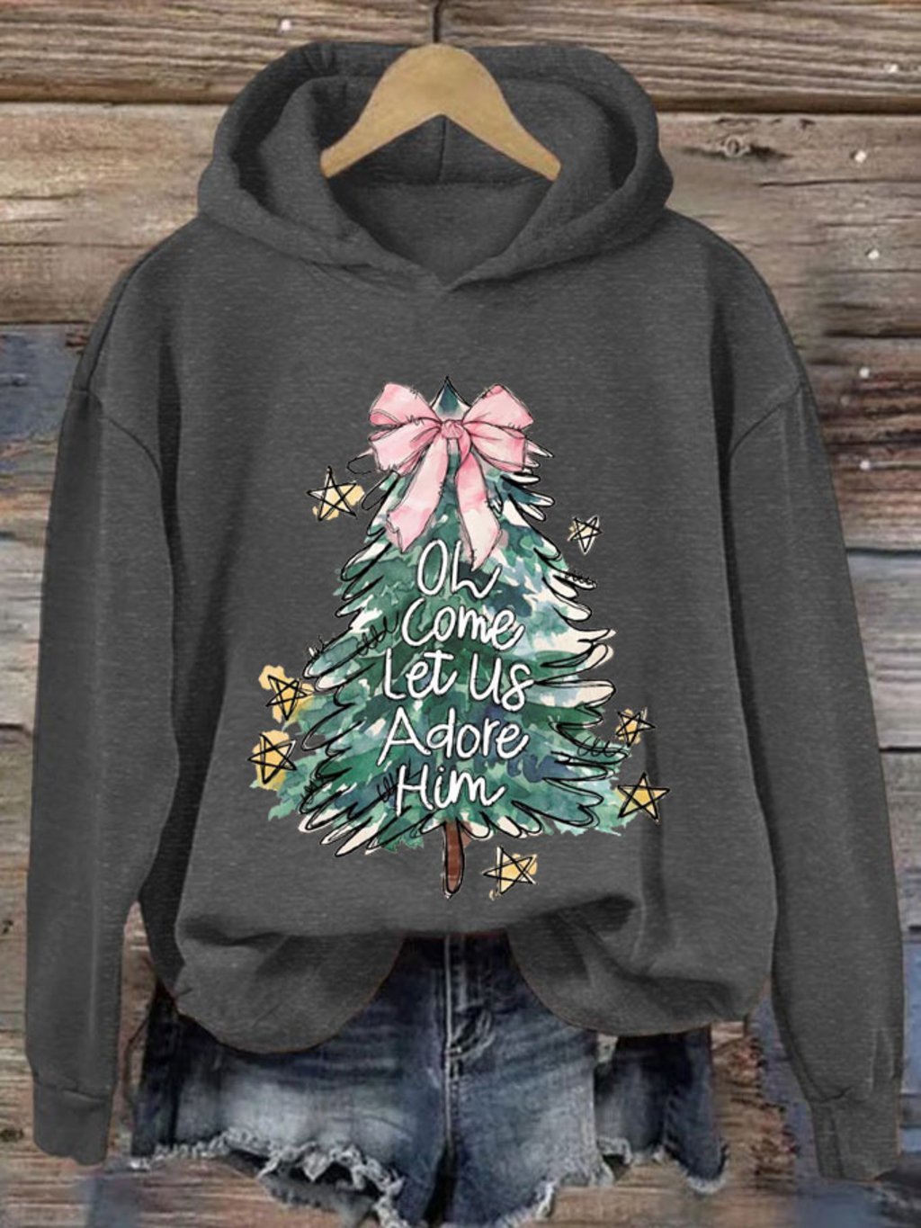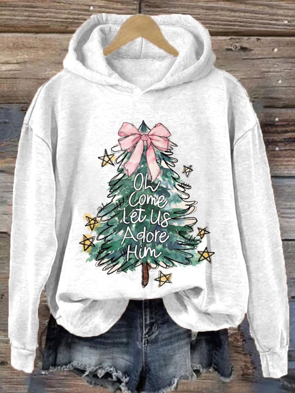 Women's Oh Come Let Us Adore Him Merry Christmas Printed Sweatshirt