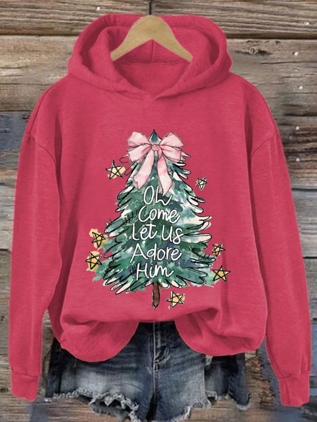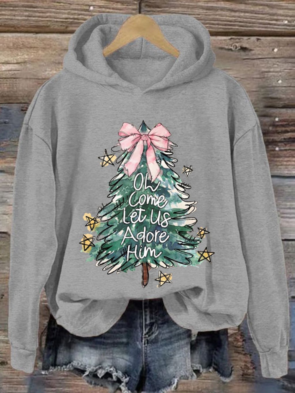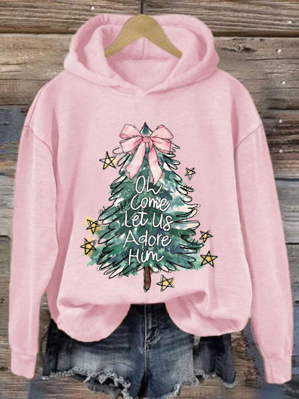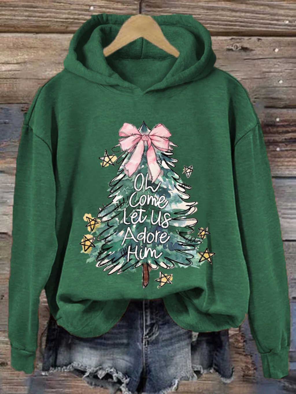 Women's Oh Come Let Us Adore Him Merry Christmas Printed Sweatshirt